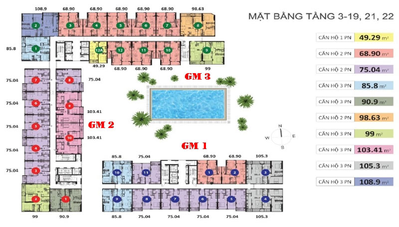 ♦ Căn hộ 3 phòng ngủ: 2.8 tỷ