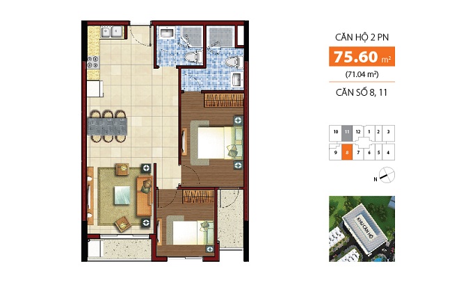 – Diện tích đa dạng khu căn hộ : 50m2, 65m2, 71m2,73m2, 88m2 (từ 2->3 PN).