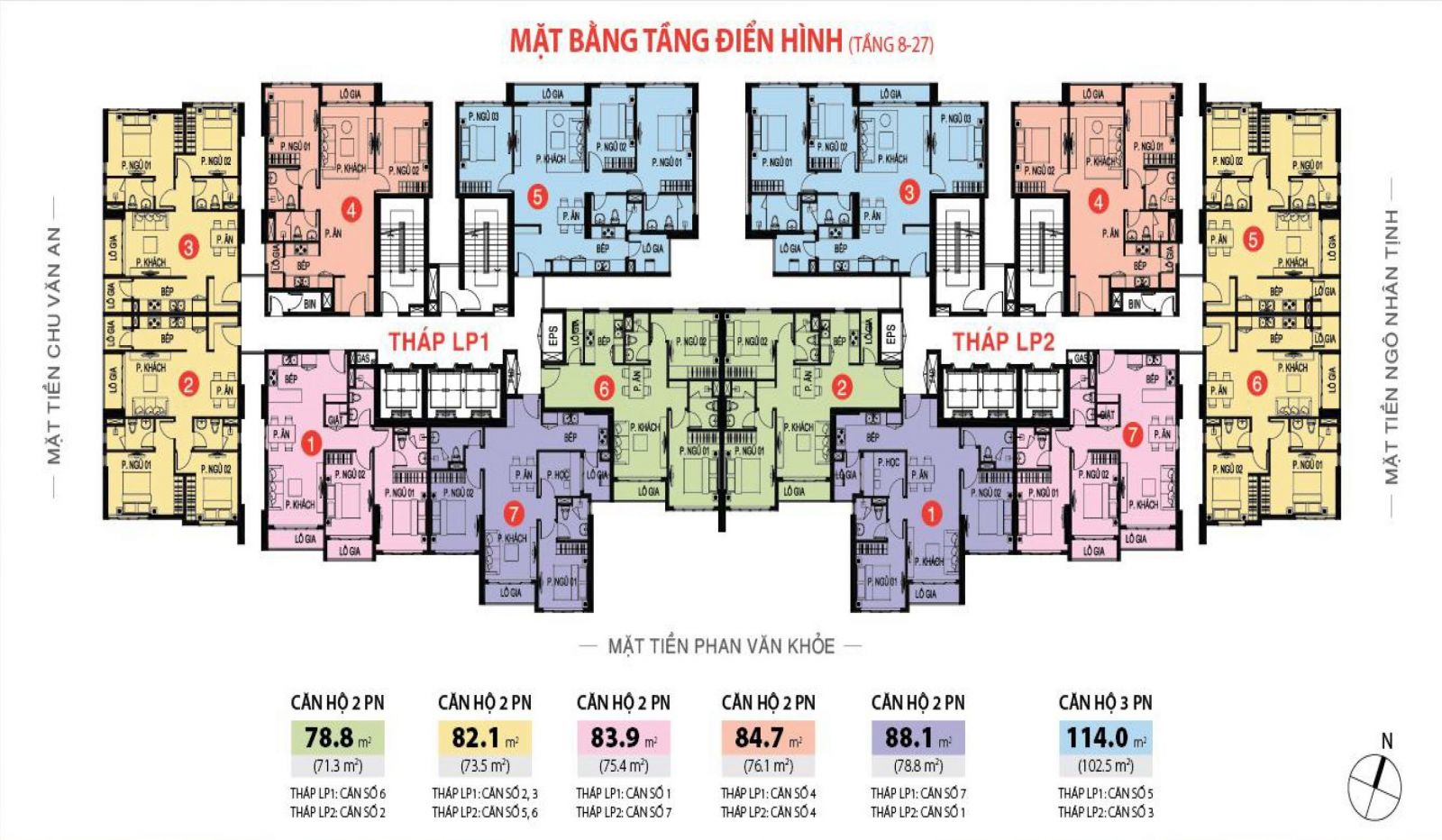 - Diện tích căn hộ: 2PN 78m2 - 84m2, 3PN 88m2 - 114m2, 4PN 162m2, căn hộ Duplex