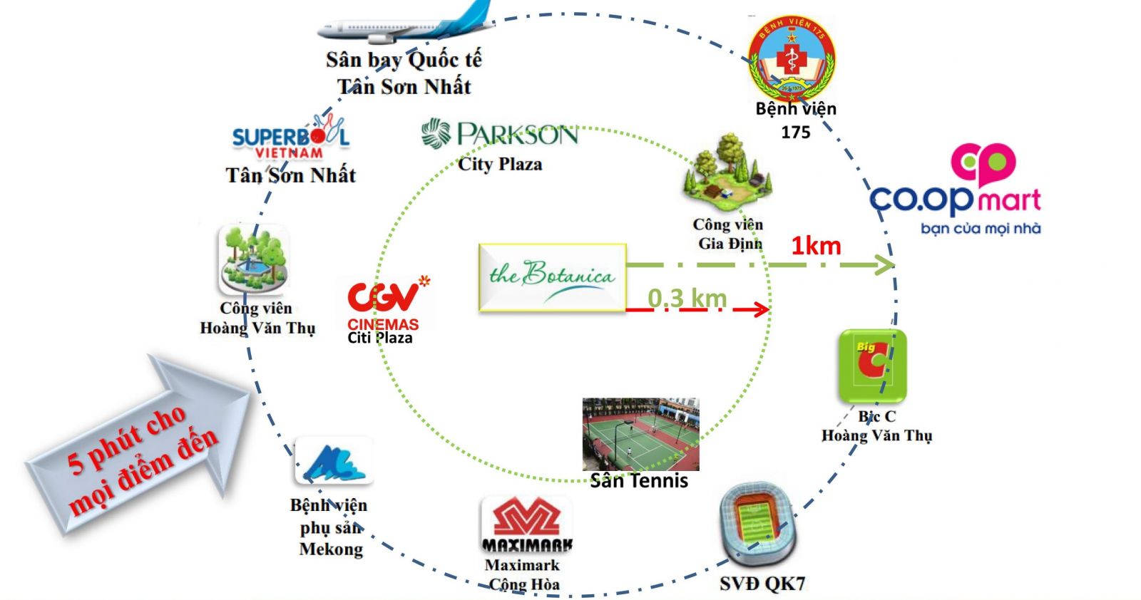 VỊ TRÍ ĐẮC ĐỊA NGAY CỬA NGỎ PHÍA TÂY THÀNH PHỐ Botanica Premier tọa lạc đối diện trung tâm huấn luyện bay của thành phố. Từ dự án di chuyển đến sân bay Tân Sơn Nhất chỉ trong tích tắc, mặt khác còn có thể dễ dàng kết nối với các tuyến đường huyết mạch Phạm Văn Đồng, Nguyễn Văn Trỗi, Trường Sơn để di chuyển đến trung tâm thành phố cũng như các khu vực lân cận khác. Đồng thời do vị trí nằm ngay sát công viên Gia Định nên cư dân tại dự án Botanica Premier sẽ được tận hưởng một không gian xanh, trong lành hiếm có ngay giữa thành phố nhộn nhịp. Ngoài ra, căn hộ Botanica Premier còn nằm trong quần thể các dự án cao cấp của Novaland như: Orchard Garden, Orchard Parkview, Gardengate, Golden Mansion và The Botanica.. Tất yếu sẽ tạo nên