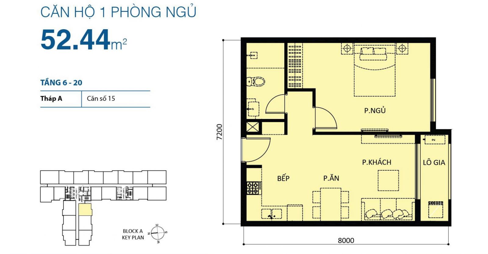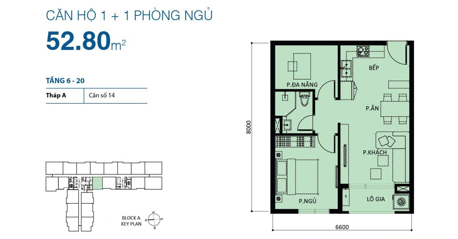 - Diện tích: 1PN 53m2 , 2PN 67m2 - 73m2, 3PN 90m2