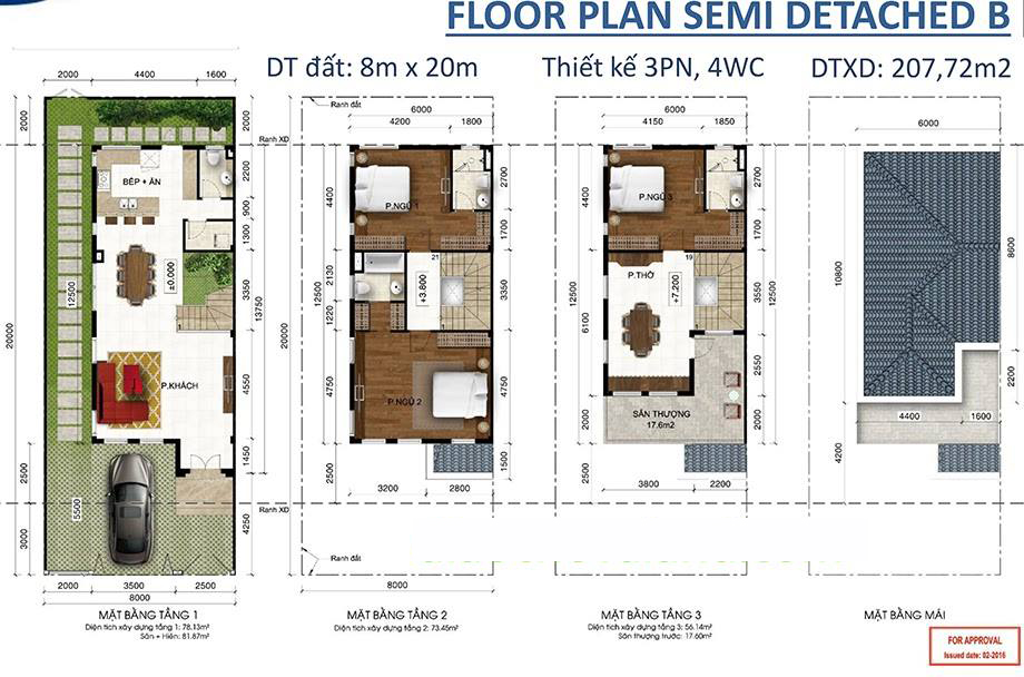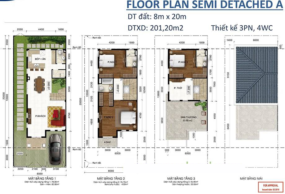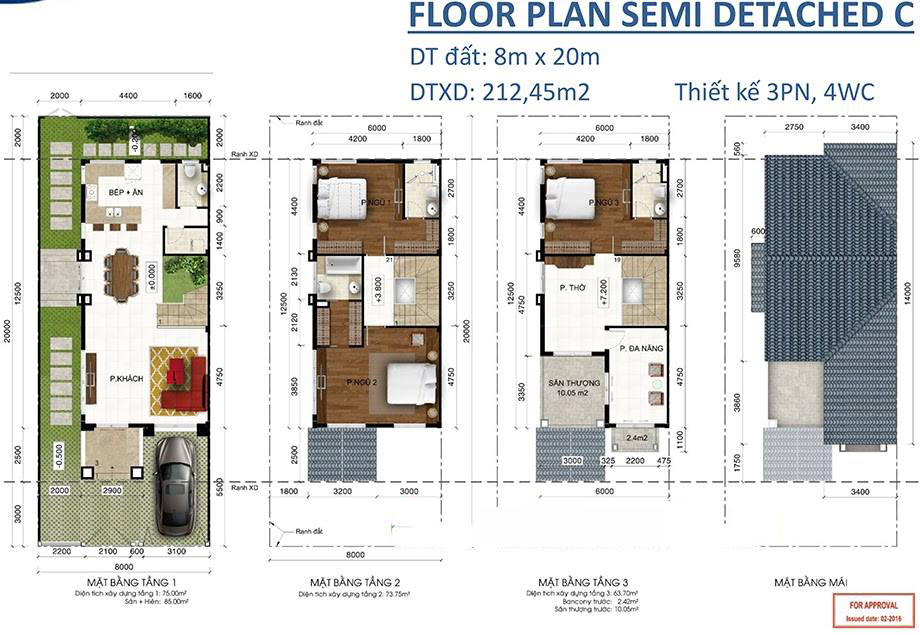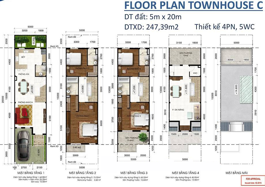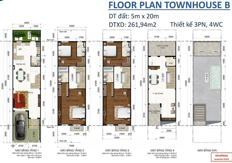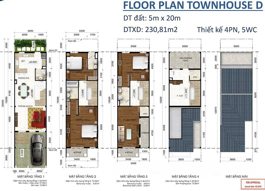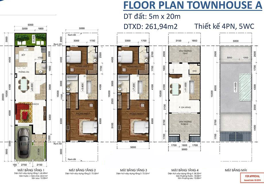 - Nhà phố liên kế: 5×20, 6×16, 6×20 xây 1 trệt 3 lầu