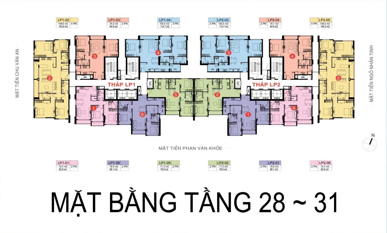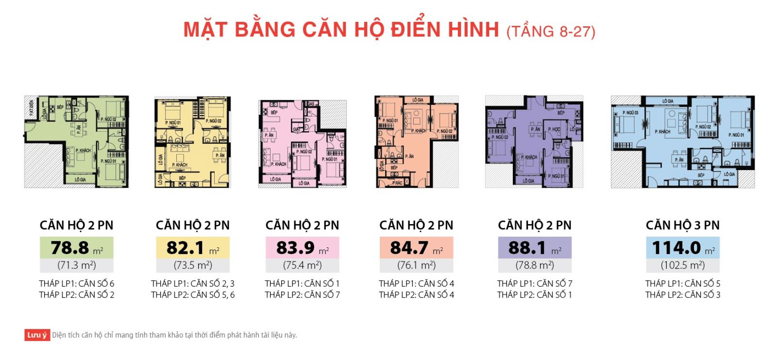 - Diện tích căn hộ: 2PN 78m2 - 84m2, 3PN 88m2 - 114m2, 4PN 162m2, căn hộ Duplex