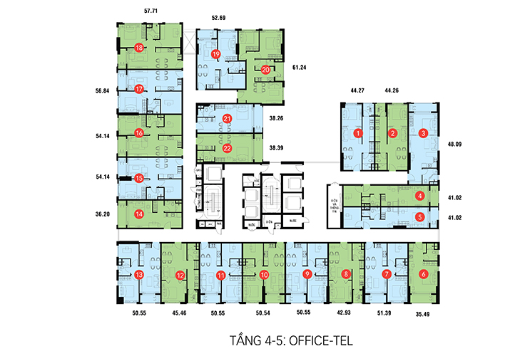 - Số lượng: 151 Căn hộ, 44 Officetel, 43 Office.