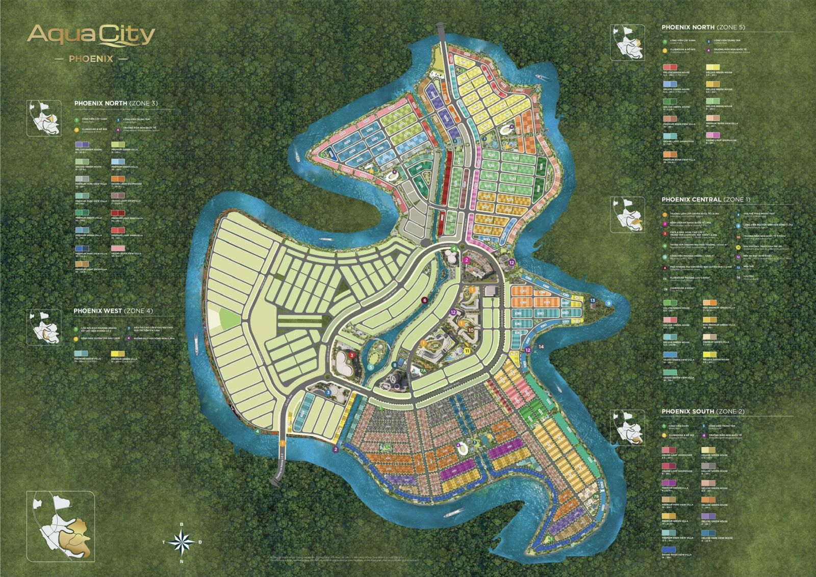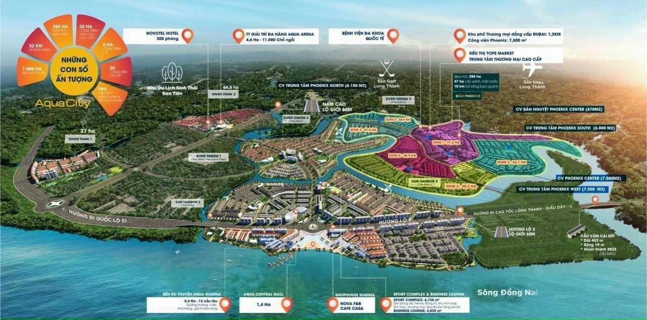 - Phân khu cao cấp của dự án gồm 4 phân khu chính: Aqua City Phoenix South, Phonenix West, Phonenix Central, Phonenix North.