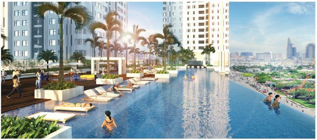 - Tiện ích nội khu: Hồ bơi, phòng tập Gym, Sauna, Café, khu vui chơi trẻ em .... - Số lượng hồ bơi: 2 hồ bơi tràn, mỗi hồ rộng 700m2