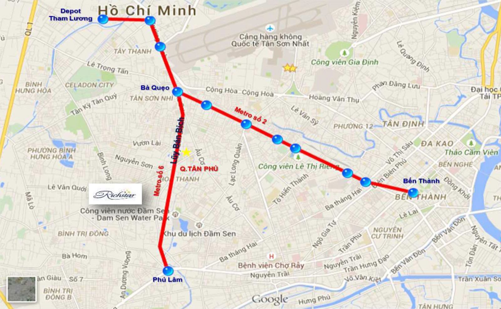 Theo quy hoạch của UBND thành phố, tuyến Metro số 6 (Bà Quẹo - Phú Lâm) sẽ trãi dài dọc theo trục đường huyết mạch Lũy Bán Bích kết nối trực tiếp với tuyến Metro số 2 tại ga Bà Quẹo và có điểm cuối tại Depot Tham Lương. Thừa hưởng hầu hết các điểm sáng về hạ tầng giao thông trong khu vực, căn hộ Richstar Novaland tất yếu sẽ tạo nên giá trị gia tăng bền vững cho khách hàng cũng như nhà đâu tư.