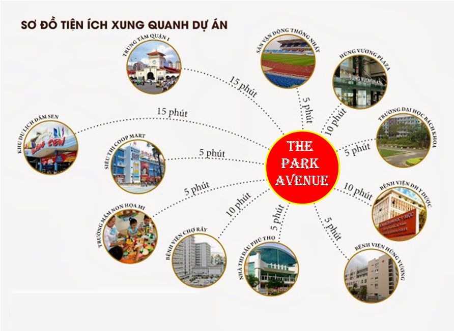 The Park Avenue Novaland nằm tại giao lộ giữa đường 3/2 và đường Lý Thường Kiệt – là trung tâm kinh tế huyết mạch của khu vực quận 5, 10, và 11. Từ đây chỉ mất 5 phút để di chuyển qua quận 1, quận 3 và dễ dàng di chuyển qua các quận lân cận như Tân Bình, Quận 6, Tân Phú, Phú Nhuận.. Ngoài ra, nơi đây cũng là khu vực tập trung dân cư đông đúc đã sinh sống và kinh doanh lâu đời, vì thế The Park Avenue thừa hưởng hệ thống cơ sở hạ tầng, tiện ích ngoại khu hoàn chỉnh và các công trình công cộng đồng bộ trong vòng bán kính 1km: Sân vận động Thống Nhất, Khu du lịch Đầm Sen, Trường Đại học Bách Khoa TP. HCM, Đại học Y Dược, Đại học Kinh Tế, Bệnh viện Chợ Rẫy, Bệnh viện Hùng Vương, Siêu thị Lotte, các chợ dân sinh..